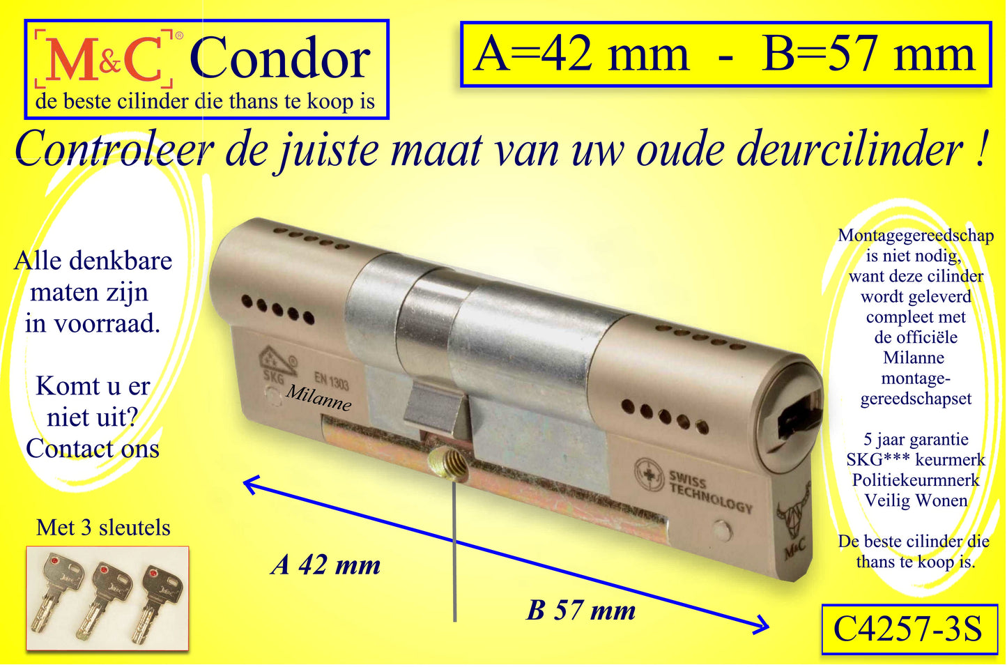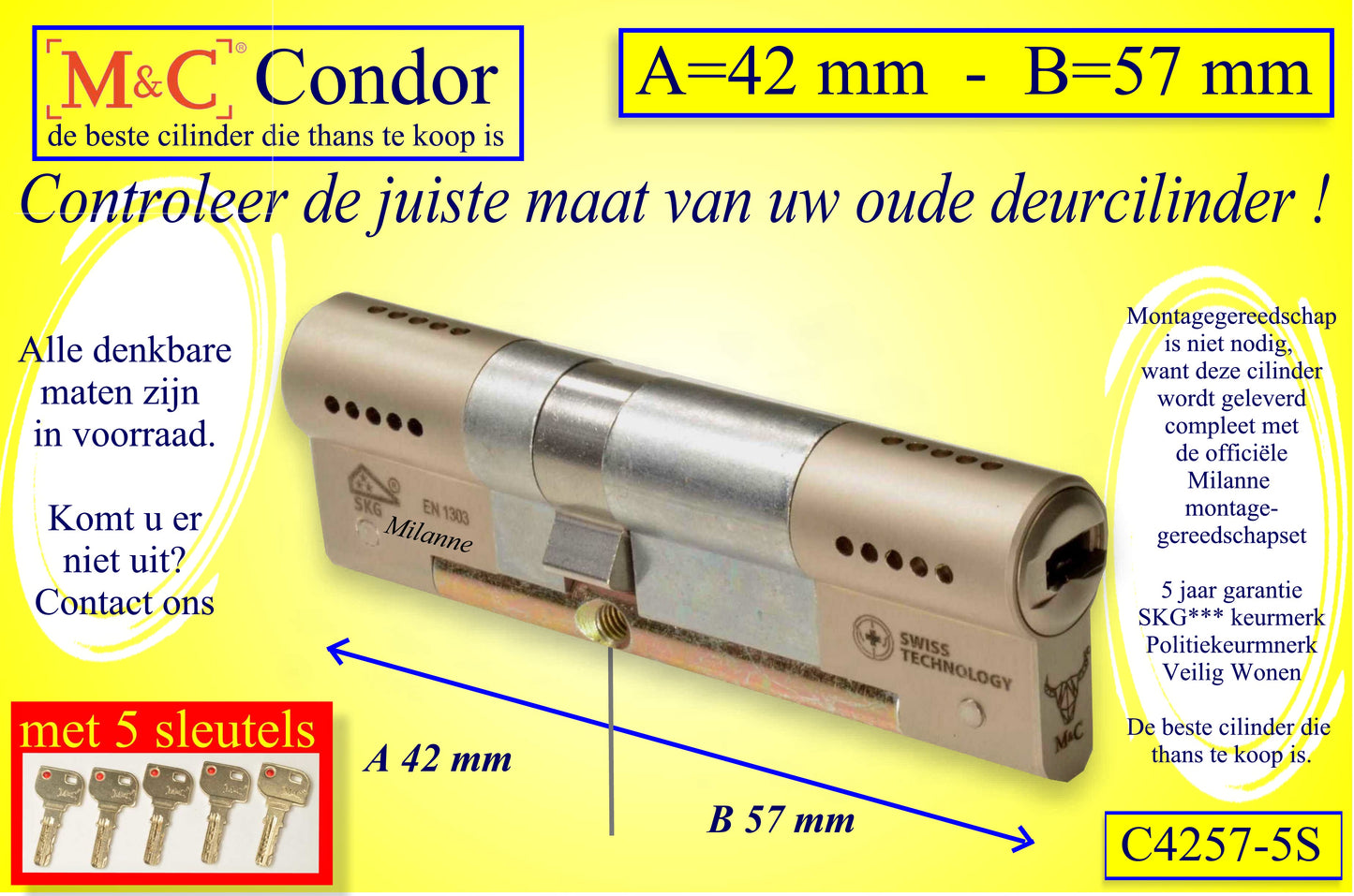 M&C Condor cilinderslot 42x57 mm