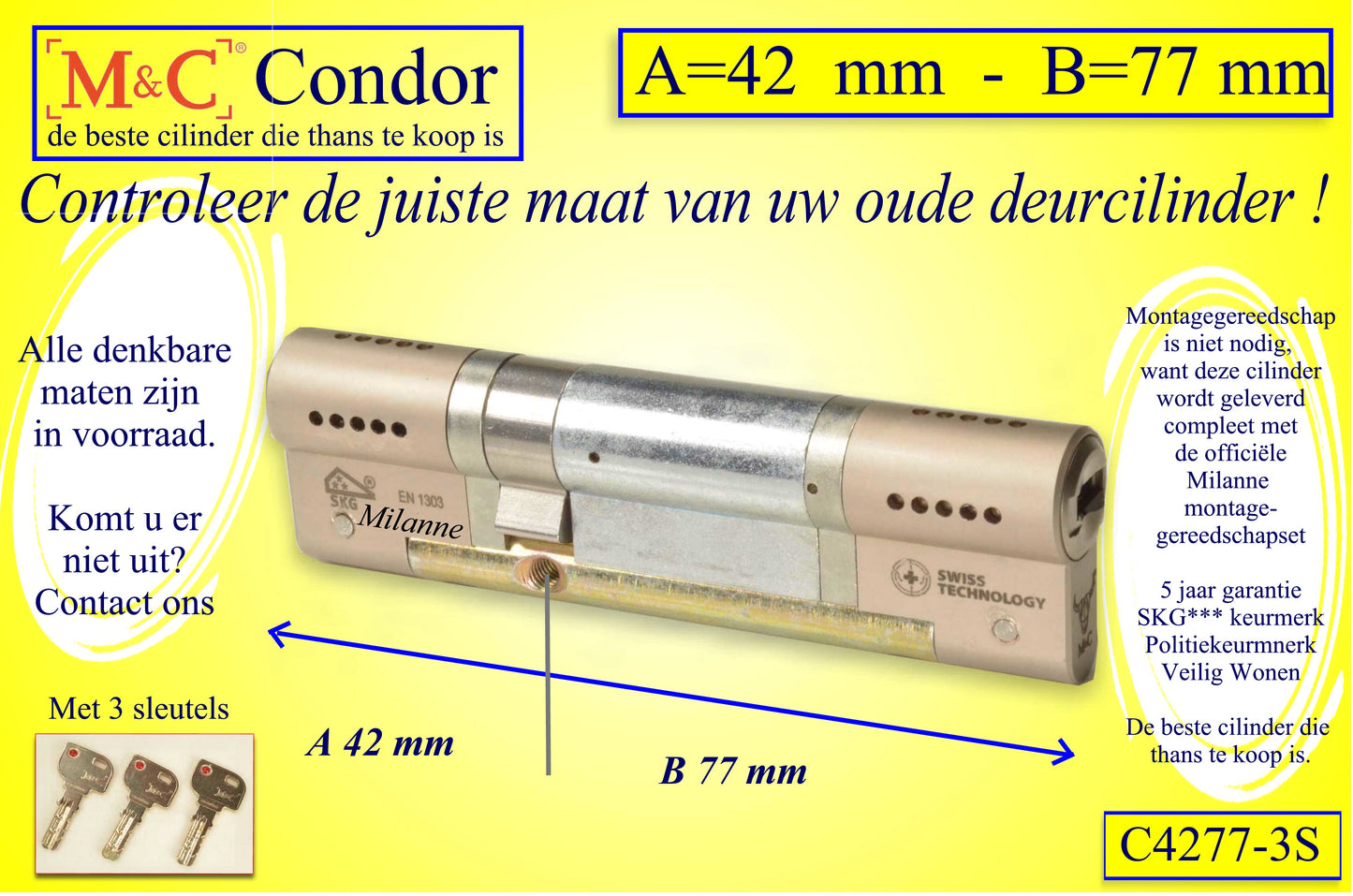 M&C Condor cilinderslot 42x77 mm