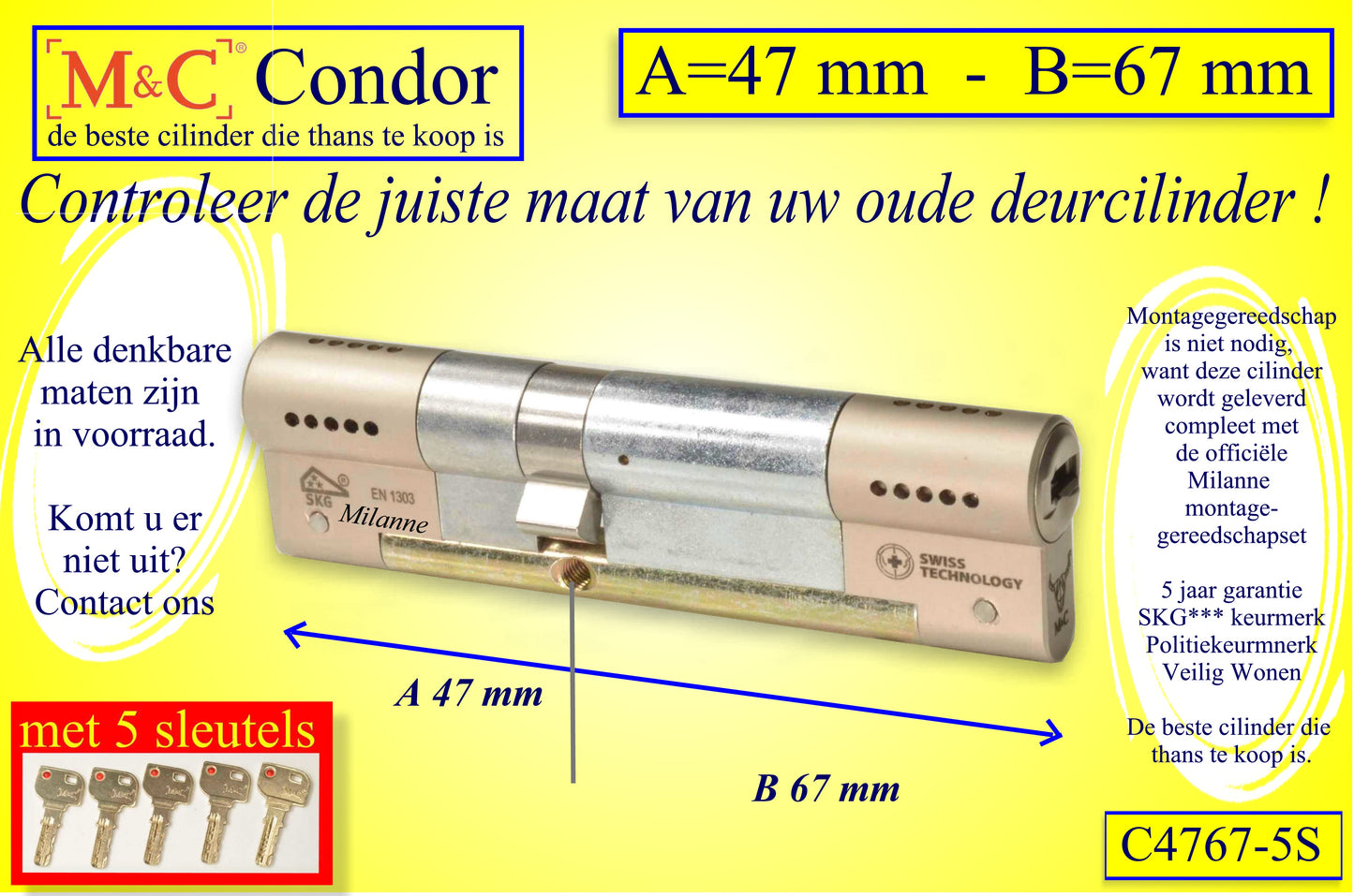 M&C Condor cilinderslot 47x67 mm