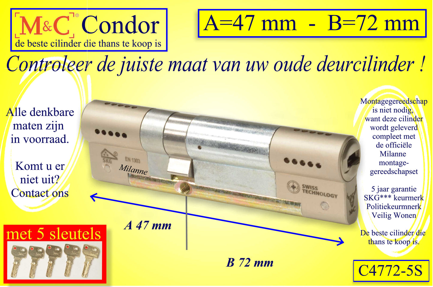 M&C Condor cilinderslot 47x72 mm
