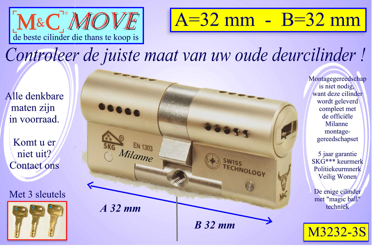 M&C Move cilinderslot 32x32 mm - met 3 sleutels