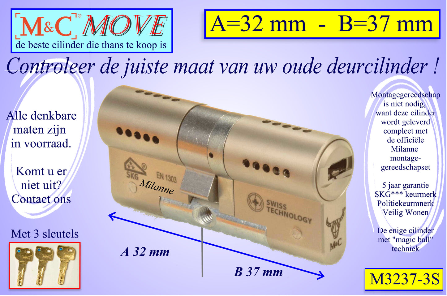 M&C Move cilinderslot 32x37 mm - met 3 sleutels