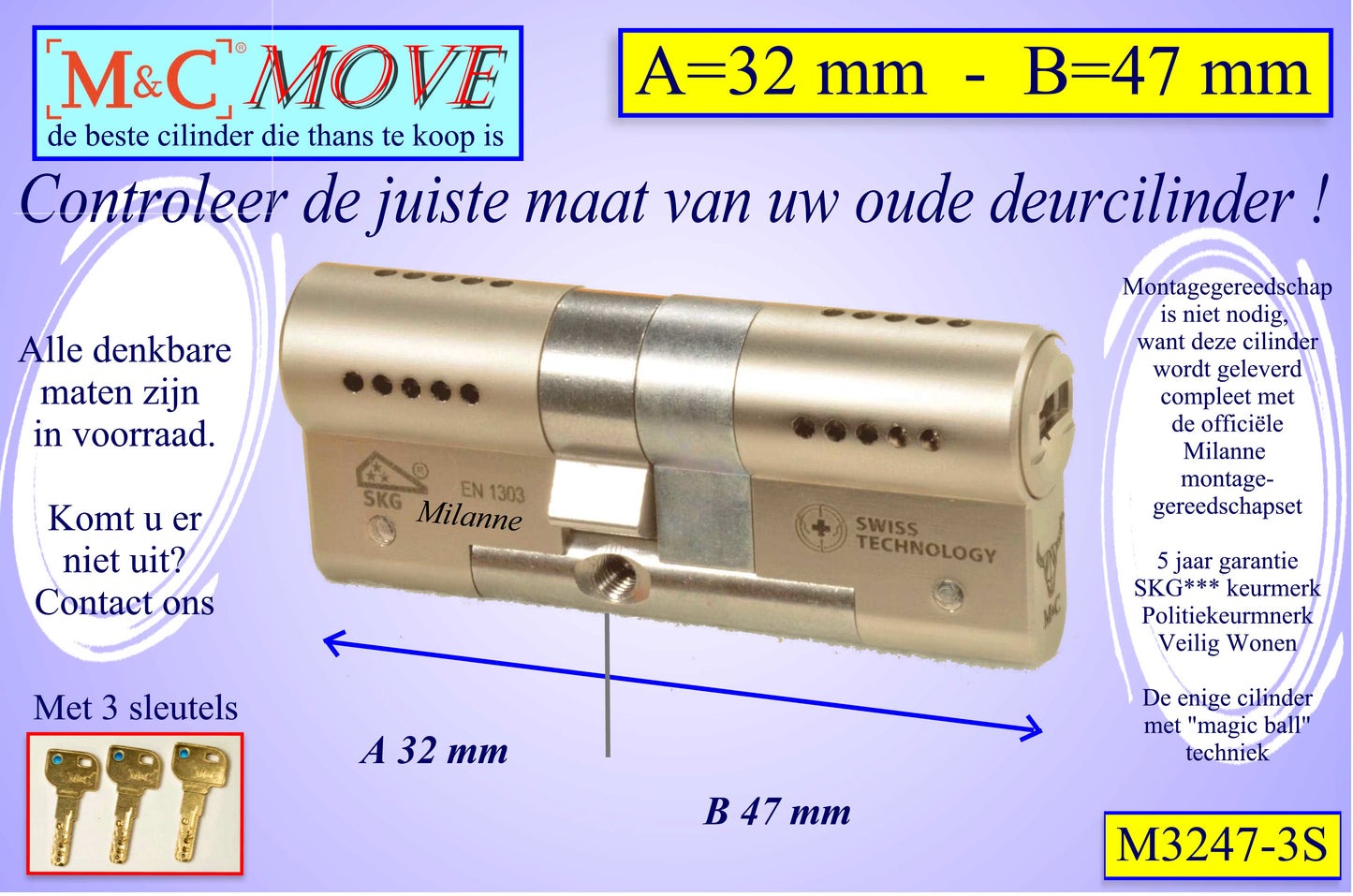 M&C Move cilinderslot 32x47 mm - met 3 sleutels