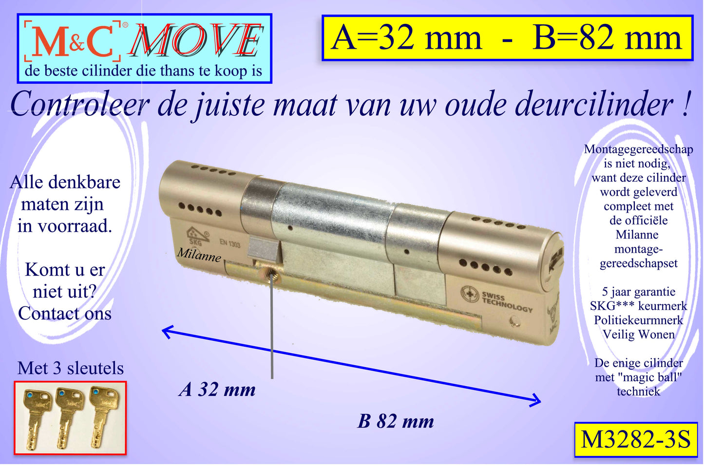 M&C Move cilinderslot 32x82 mm - met 3 sleutels