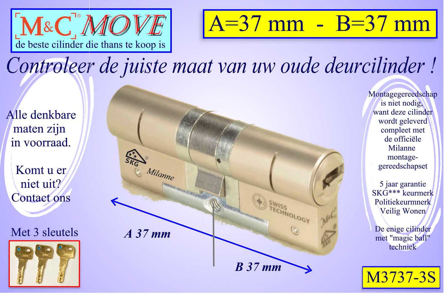 M&C Move cilinderslot 37x37 mm - met 3 sleutels