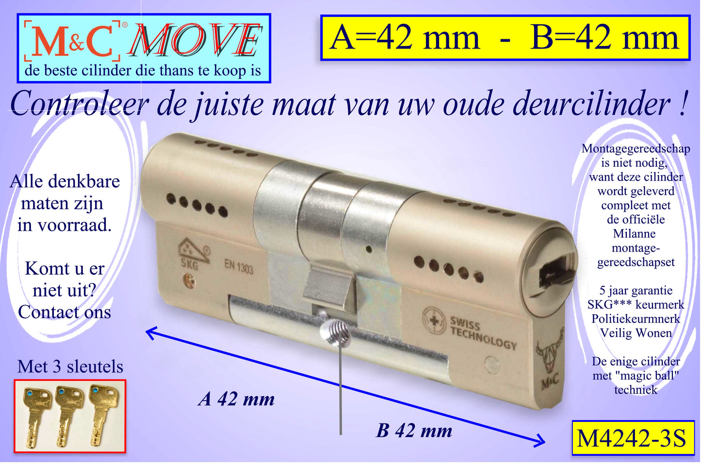 M&C Move cilinderslot 42x42 mm - met 3 sleutels