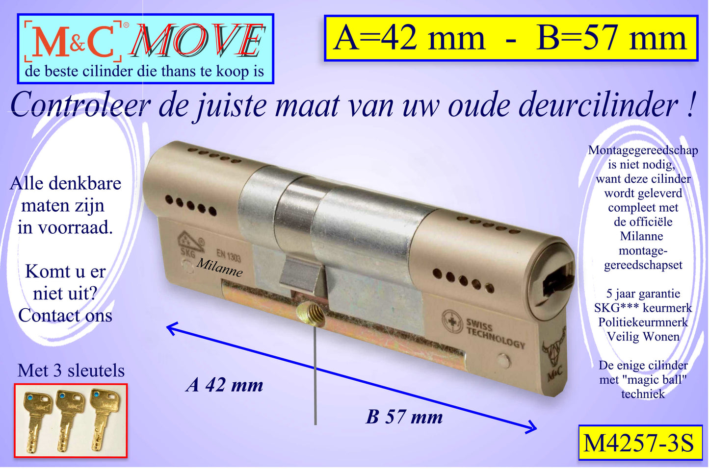 M&C Move cilinderslot 42x57 mm - met 3 sleutels