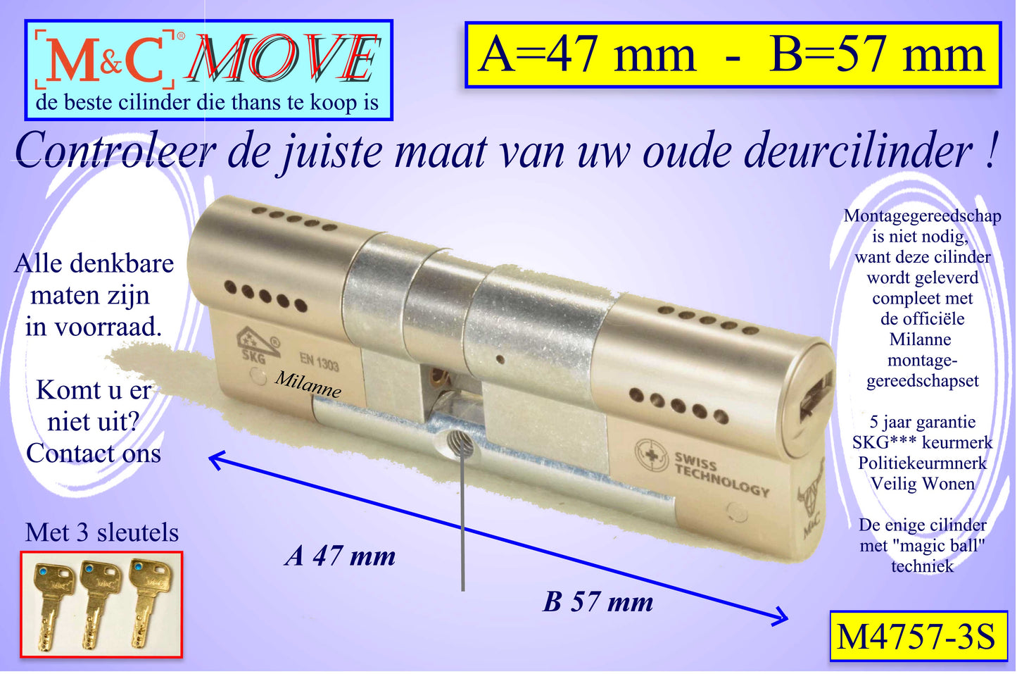 M&C Move cilinderslot 47x57 mm - met 3 sleutels